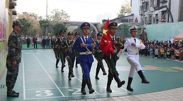 本网讯 今天(11月11日)上午,公司老兵团国旗护卫队12名成员到荆州商业幼儿园参加升国旗仪式。退伍老员工向小朋友示范了军训标准动作,宣传了国防教育知识,营造国防教育浓厚氛围。院团委相关负责人表示,此次活动的开展有利于进一步增强幼儿园师生国防意识,培养小朋友爱国、爱军、崇武思想和组织纪律性,从小树立建设和保卫祖国的志向。员工记者 朱海燕 摄影报道