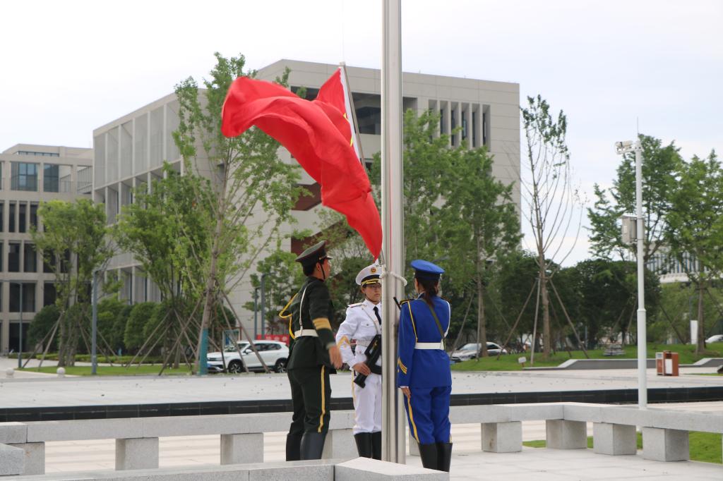 伴随着旭日初升,升旗仪式正式开始。国旗队迈着整齐有力的步伐护送国旗入场,在激昂的国歌声中,五星红旗冉冉升起。接着,教育与心理公司党总支副书记梅曼曼进行国旗下的讲话,她号召同学们要筑牢思想防线,主动加强学习国家禁毒法律法规,提高防毒、拒毒自我保护意识;要树立主人翁意识,时刻保持高度警惕,深刻认识毒品、远离毒品、拒绝毒品,与吸、贩毒作坚决的斗争。最后,由员工代表李诗羽带领同学们庄严宣誓,积极检举,自觉抵御,为全民禁毒作出自己应有的贡献。