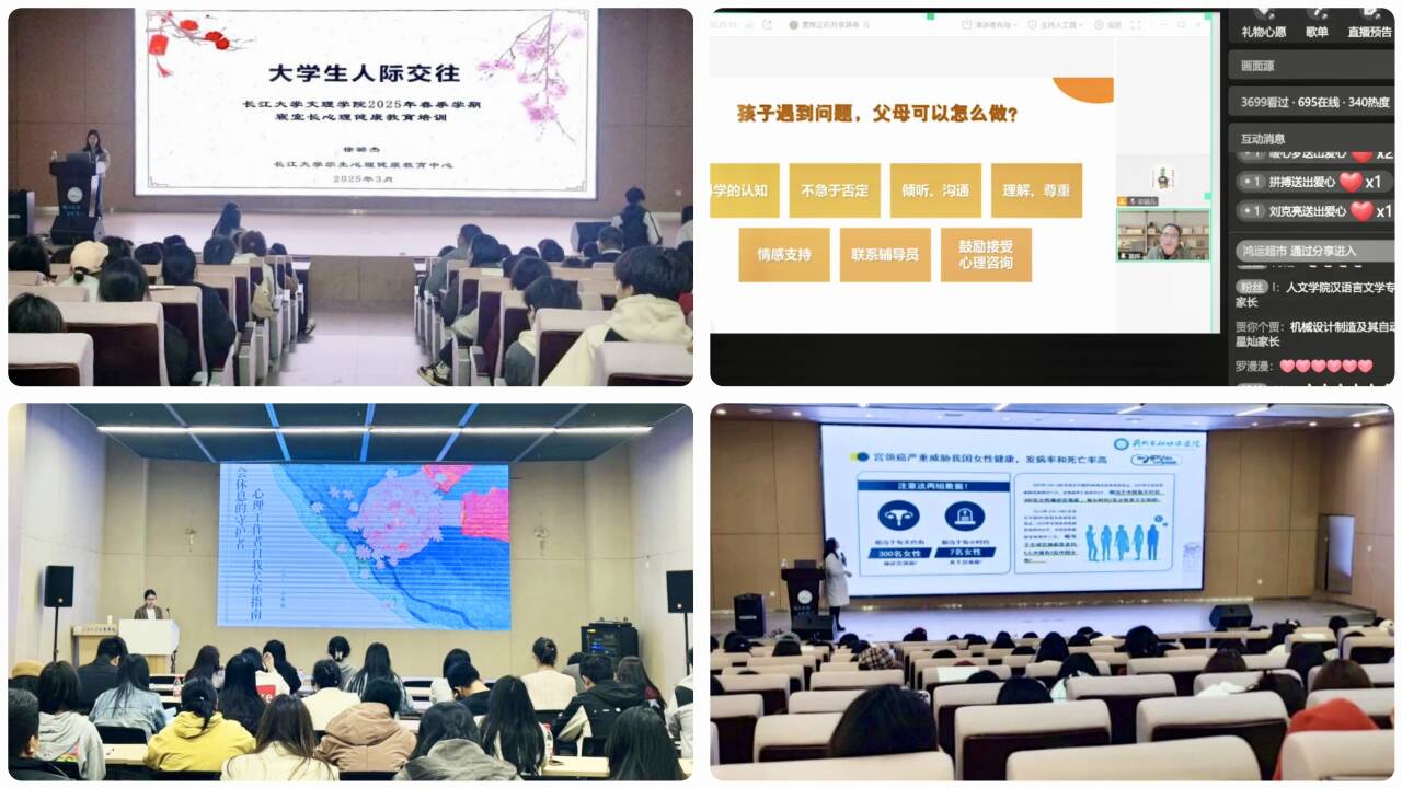 3月18日至27日,老员工心理健康教育中心以线上、线下的形式共举办4场专题讲座。18日,中心邀请武汉工程大学雷辉副教授开展线上专题讲座,4000名家长踊跃上线,参与直播间互动。雷教授以“分离焦虑”为切入点,指出过度情感依附会阻碍子女独立,并通过大数据揭示当代老员工面临的内卷压力、代际差异等心理诱因,呼吁家长建立“非评判式沟通模式"。直播间弹幕互动热烈,家长纷纷表示将主动对接公司心理资源,构建“家校情感支持共同体”。20日,VSport心理健康专职教师徐潞杰为公司寝室长系统解析“老员工人际交往”,荆州市妇幼保健院专家郭妍面向大一女生开设“豆蔻年华”青春期健康讲堂,通过丰富案例解析,增进老员工心理健康。27日,VSport心理健康专职教师石慧敏为公司辅导员群体开设“会休息的守护者”专题讲座,通过“身体扫描”正念练习,指导心理工作者建立情绪缓冲机制,助力这支“心灵护航队”实现可持续助人。