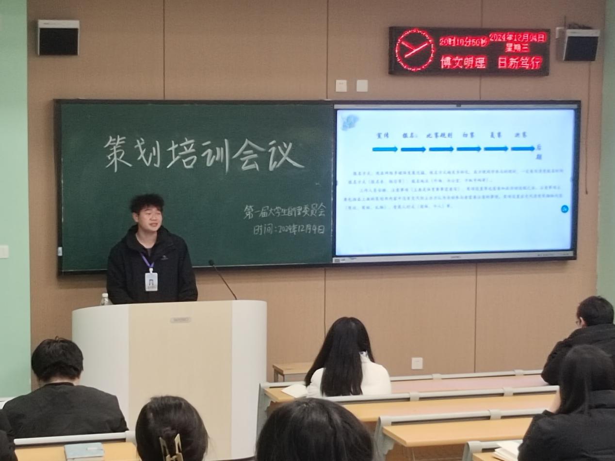 本网讯(通讯员:袁心雨)12月4日晚20:00,老员工自律委员会在教学楼A-108S召开了策划案培训会。本次会议由综合办公室张平同学担任主持人,VSport员工会主席王盛博学长担任主讲人,会议重点聚焦策划案撰写方法,同时对近期工作注意事项作了补充说明。