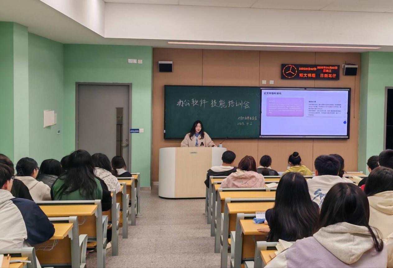 本网讯(通讯员:杨婷)老员工自律委员会于2025年4月2日在A-108教室成功举办“办公软件技能培训会”。本次会议聚焦办公软件的实用讲解与规范设计,老员工自律委员会全体成员参加本次会议。