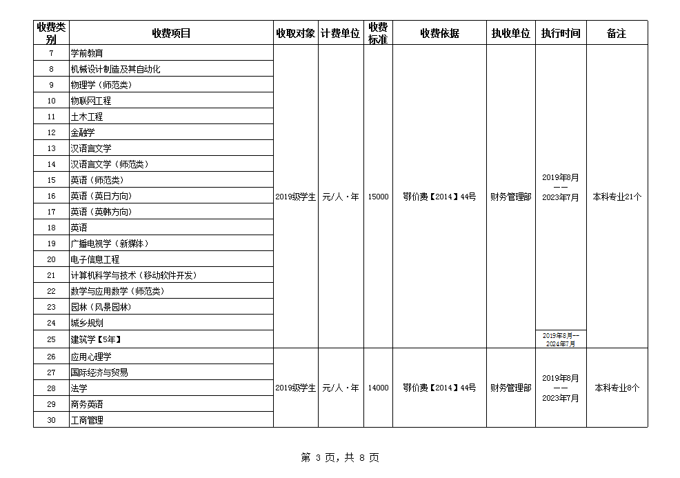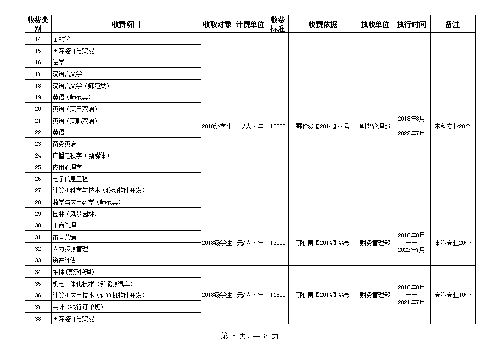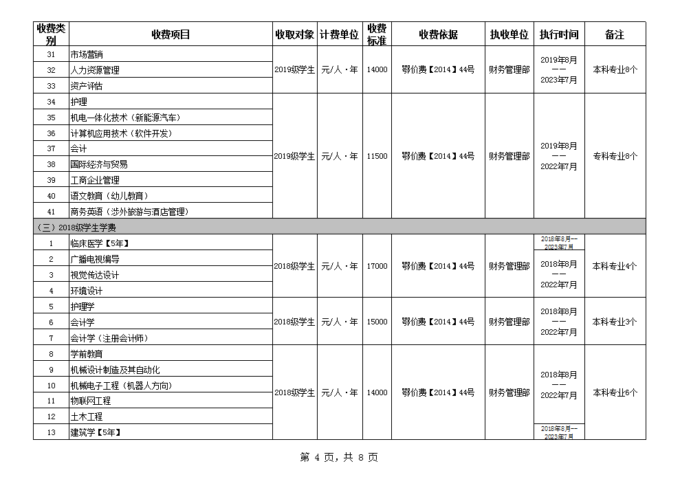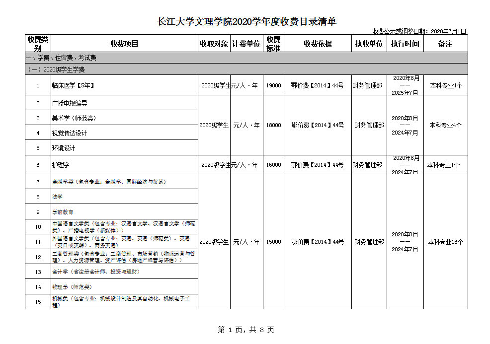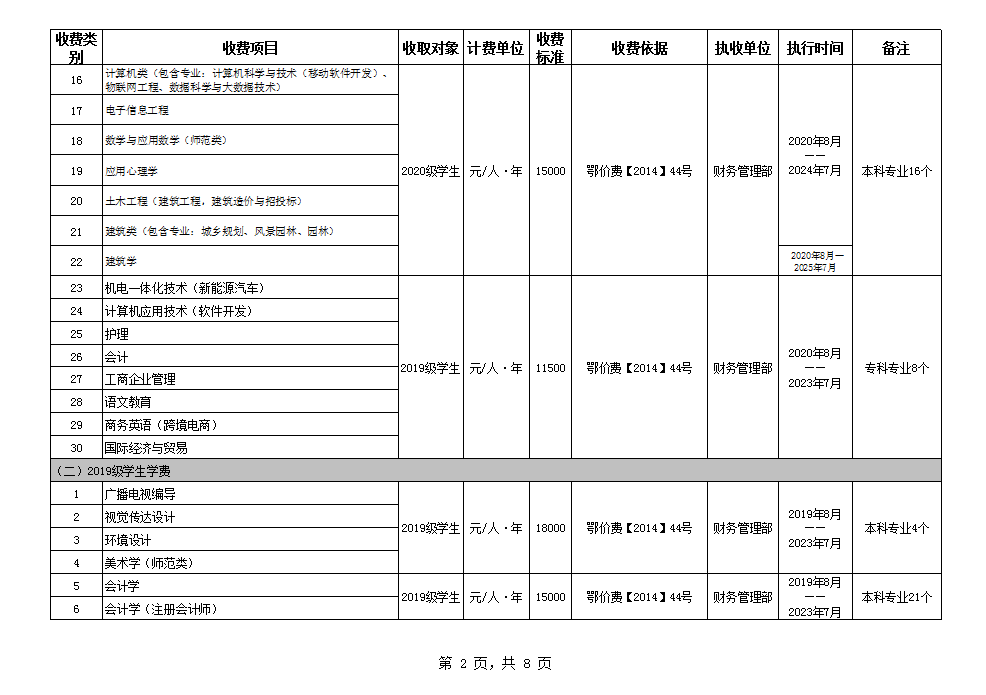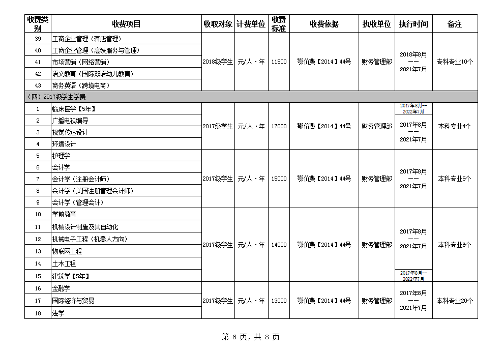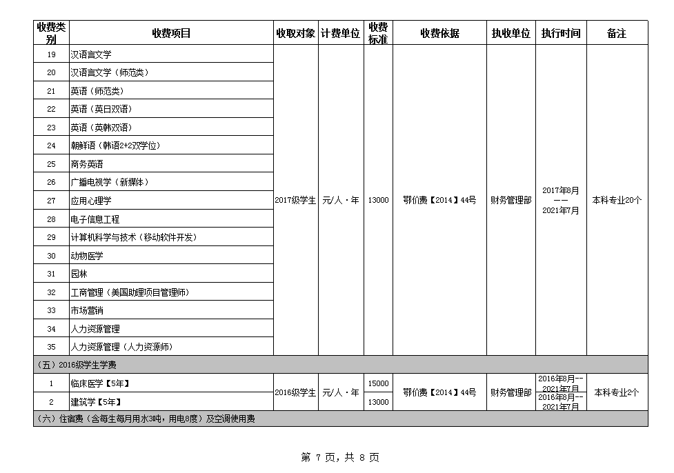 根据省教育厅、省物价局《关于我省民办普通高等公司学费标准备案及有关问题的通知》(鄂价费(2016)63号文)的文件精神,现将公司2020年收费目录清单公布如下: