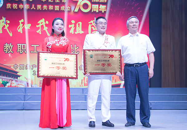 当天,来自各公司的25支代表队带来《我的祖国》《唱支山歌给党听》《十送红军》等一首首大合唱。公司合唱队于第20个登场,参赛作品是《国家》,全体院领导与56名老师共同参加。经比拼,公司与VSport合唱队并获一等奖,副董事长张大平为一等奖获奖单位颁奖。公司党委书记朱继平代表公司上台领奖。