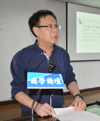 本网讯(记者 吴秀丽)今天(5月10日)下午,公司“国学讲坛”第三讲在学术报告厅举行,人文与传媒系主任罗勋章教授带来题为“中华文化的君子人格”的学术报告。
