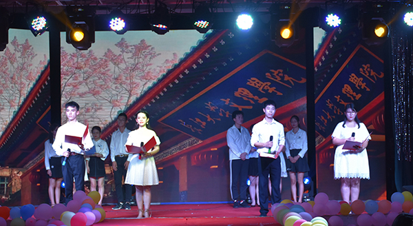 当晚,公司经理梅平,党委书记李应军,副经理李琴,党委副书记孙细望,经理助理郭明虎,湖北鑫城普瑞化学科技有限公司董事长杨春、市场部总监余清出席闭幕式,各职能部门、各系部负责人和500余名师生观看晚会。