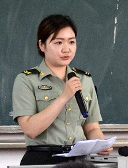 占书健同学经过部队三年的历练,练就了强健的体魄,养成了优秀的军人品格,通过在第二炮兵54基地叶挺独立团、第二炮兵96528部队服役,成就了钢铁般的意志,出色完成了纪念中国人民抗日战争暨世界反法西斯战争胜利70周年大阅兵保障任务、首都地区抗洪抢险任务;退役两年的石禹同学在军队中褪去了入伍前的柔弱和青涩,明白了军人的职责使命,锻炼出坚韧不拔和拼搏进取的昂扬风貌,向同学们展现了一个“不爱红装爱武装”的别样的军旅生涯。