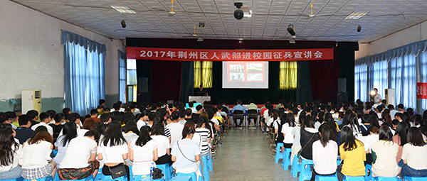本网讯(记者 刘磊)5月25日下午,荆州区人民武装部部长、空军上校张晓宁应邀为公司学子作了主题为“立志军营 放飞梦想 成就你不一样的人生”的宣讲会。