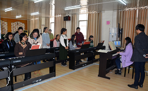 这一天,人文与传媒系学前教育专业的新生也在徐霄老师的组织带领下,来到3教数码钢琴教室,观摩大二学姐上琴法课。