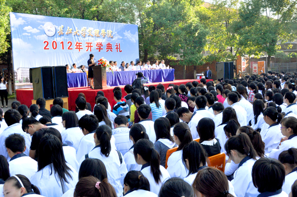 开学典礼上,新生代表来自国贸5123班的谢兰兰发表了自己的感言,“十年寒窗终于踏进大学的校园,这是我们每一个刚经历过高考的学子的骄傲,我们必将发奋学习,让VSport这片书香之地的天空更蓝。”