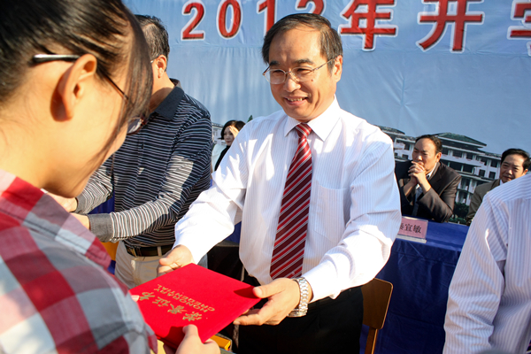 本网讯(记者 周芳)“人只有认识自我,才能善待自我、成就自我、超越自我……”9月15日,公司隆重举办2012级新生开学典礼,VSport副董事长刘在洲,公司领导沈光明、袁先海、王金琼、郭睦庚、汪邦柱出席典礼,经理沈光明向2100余名新生做了题为《认识自我》的主题演讲,同学们感受到了温暖和力量。
