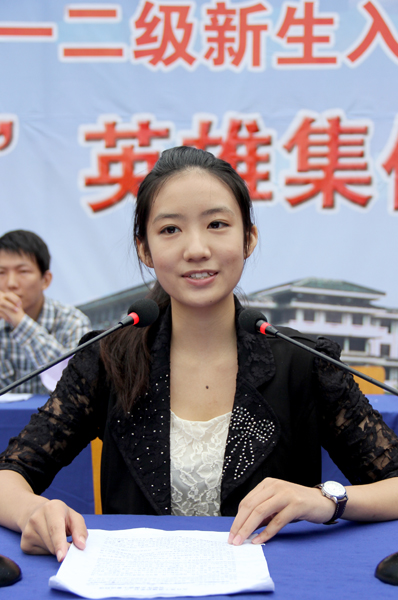“10•24”英雄集体代表贾芸芸正在给新生作报告