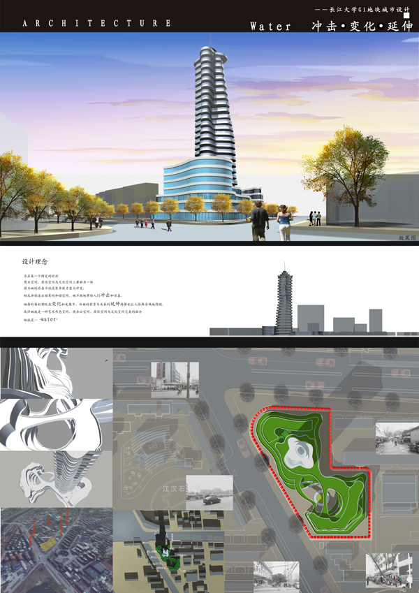 理工学部认真筛选,最终确定了赵燕玲、向奎、番禺钢、陈芸团队和解陈诚、曾晶晶团队作品参加比赛。前者的《Water——冲击•变化•延伸》方案获二等奖(一等奖空缺),同时获2000元奖励;后者的《十年树木•百年树人》方案获优秀奖。