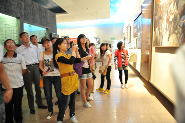 每到一处,大家都以饱满的热情聆听革命故事,细细品味革命道理,不少人拿出相机或手机拍摄照片,留下这难忘时刻。