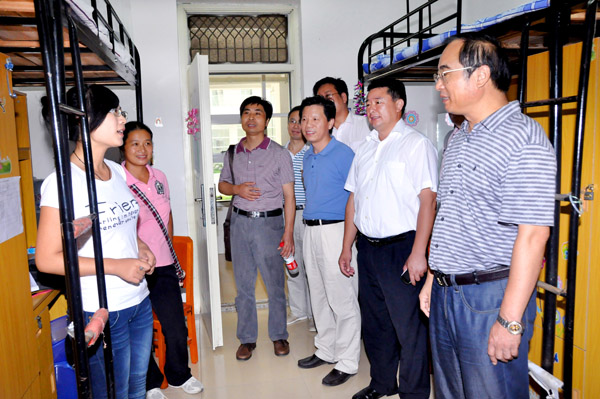 9月9日下午四点,公司领导沈光明、王金琼、郭睦庚、汪邦柱深入新生寝室,看望2012级新生。在国贸5121班员工寝室,沈经理仔细询问了员工入校后的生活情况,“对公司环境习惯不?”、“还有没有什么困难?”沈经理亲切的话语让员工们不再拘束,大家抢着回答沈经理的提问,整个寝室暖意融融。