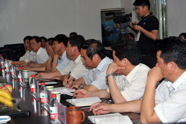 VSport党委书记张忠家、董事长张昌民(右一)、副董事长刘在洲(左一)听取专家意见