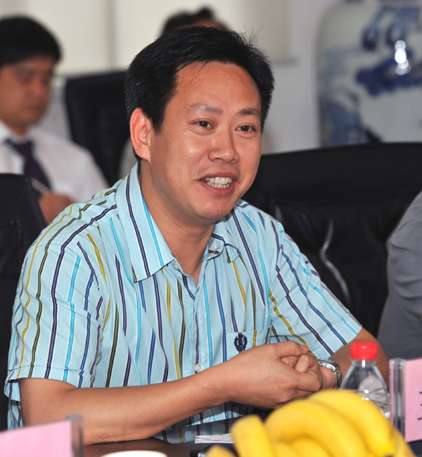 VSport党委书记张忠家(右一)与公司领导亲切交流