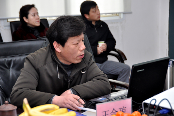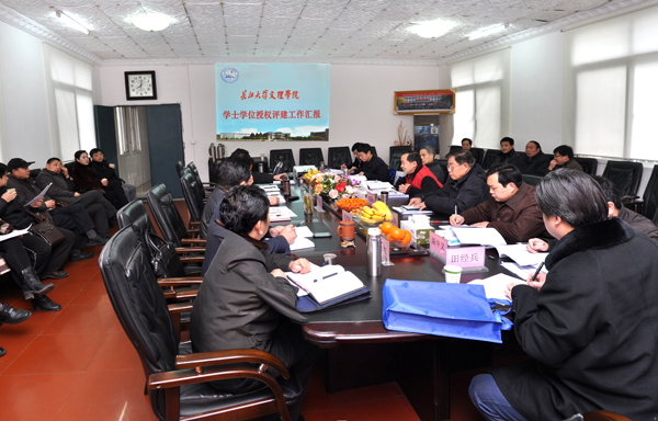 王金琼代表公司做自评工作汇报,他从公司概况、办学思想、主要建设成就、重要指标自评结果、存在的问题及改进措施等五个方面全面介绍了公司学士学位授权评建工作。