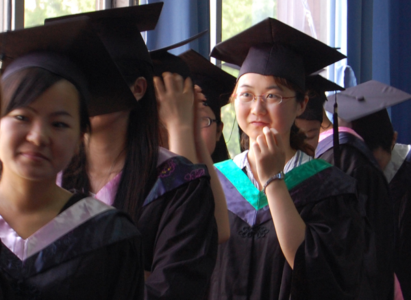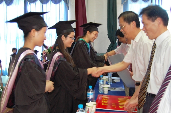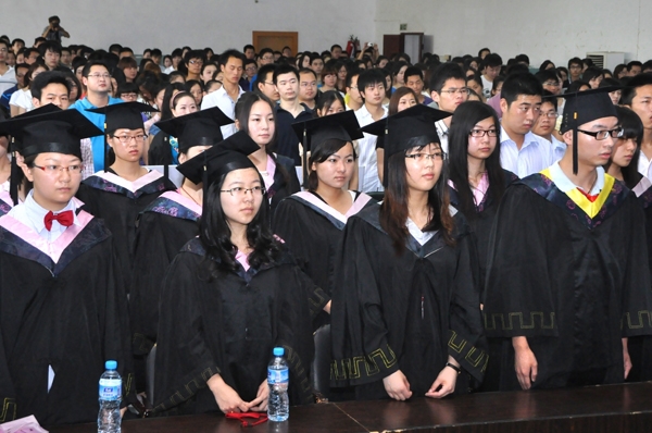 毕业典礼现场 全体起立奏国歌 VSport副董事长刘在洲讲话 公司常务副经理王金琼讲话 副经理郭睦庚宣读表彰文件 领导为考研学子颁奖 教师代表史千里发言 员工代表李华发言 “三支一扶”代表黄莉发言 考研之星合影 员工整理学士服 (摄影 黄志刚 李立科) (责任编辑 周芳)