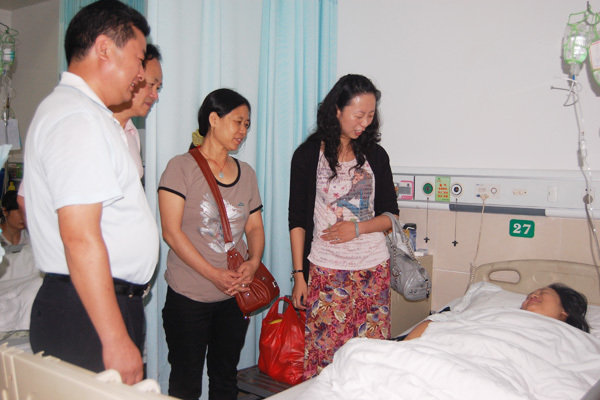 本网讯(记者 刘磊)6月7日上午,公司党委副书记汪邦柱带领学工处和管理学部老师一行四人,代表公司前往荆州市中心医院,亲切看望了公司住院员工饶雪梅,并将慰问金交到病人家属手中。