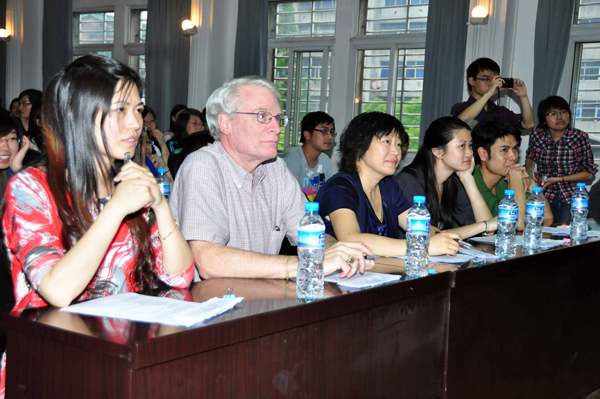 流利的口语,精彩的翻译,巧妙的配合,有声有色的电影配音,无不体现出参赛选手们赛前的精心准备以及各自的英语水平。在英文博客展示(项目研究)环节,来自英韩5091班的连芳向观众详细介绍了自己的精美博客,丰富的内容、合理的格局,博得了观众的热烈掌声;在英文电影配音(话剧表演)环节,选手们配合电影场景做流利的英语配音和精彩的肢体动作表演,纯正的发音,滑稽的动作,惹得台下笑声不断,现场气氛活跃。