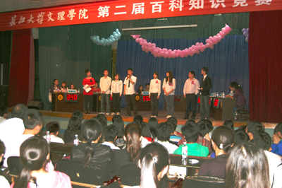 本网讯(员工记者 黄志刚)台上的选手积极抢答,台下的观众加油助威,5月27日晚的工会大礼堂格外热闹。第四届“泮池五月风”科技文化节系列活动之百科知识竞赛总决赛在此精彩上演。