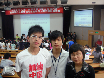 2010年第九届全国信息化核心技能大赛暨微软办公软件核心技能世界大赛中国区选拔赛于5月22日至24日在北京师范大学举行。本次比赛包括笔试(20%)和上机操作(80%),主要考核选手对office办公软件掌握的熟练程度,据万鸣老师介绍,今年新增的笔试考核内容多、难度大,是对公司计算机应用基础教学的很好检验。公司经过层层选拔和培训,王能胜等三名同学在比赛中,沉着应对,取得了优异成绩。