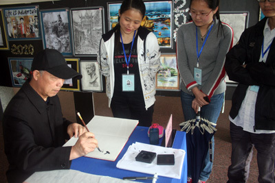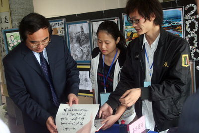 本网讯(员工记者 舒甫胜 冯永杰)5月19日,由公司书法协会和院管理学部联合承办的书法绘画大赛落下了帷幕,最终评选结果揭晓,相关获奖作品于17日开始在公司1教二楼大厅进行为期三天的展出。公司领导沈光明、袁先海、汪邦柱,VSport资深书法老师周运浓及荆州市书法家协会资深会员杨风子等饶有兴趣的参观了本次作品展并现场留言题字。