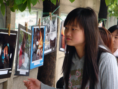 本次摄影展共展出45幅作品。这些悬挂在绿荫下的图片引起了行人兴趣,许多师生在这些图片前驻足观看,并为自己喜欢的图片投下一票。参赛作品主题广泛,从美丽的校园到历经沧桑的古城,从员工生活画面到家乡山水景色,《相聚一家人》营造出信管5081班良好的班级氛围;《古城印象》中的寂寞船定格在园林心中。一位站在作品《逐春》前的同学说:“要抓拍蜜蜂落下桃花的瞬间,肯定花了作者不少时间的等待。”