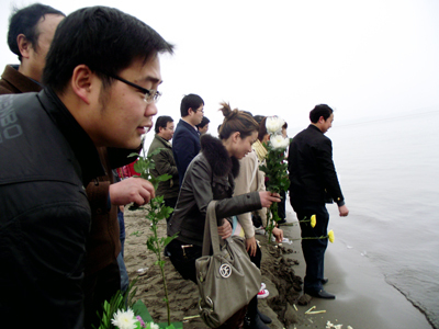 本网讯(通讯员 鲍琪)手中的菊花抛进江中,随着此时平静的江水远去……4月18日下午,一改往日的踏青春游活动,理工学部工会组织全体教师来到宝塔湾祭奠逝去的老员工英雄。