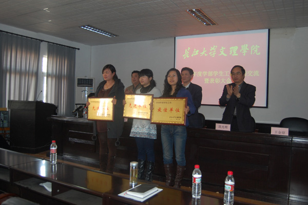 会上还宣读了《关于表彰2009学年员工工作先进单位的决定》,学工处经过全面考核评估,最终决定授予外语学部2009年度“员工工作最佳单位”荣誉称号,授予管理学部、理工学部等两个学部2009年度“员工工作先进单位” 荣誉称号。院领导沈光明、袁先海、汪邦柱分别为获奖单位颁奖。