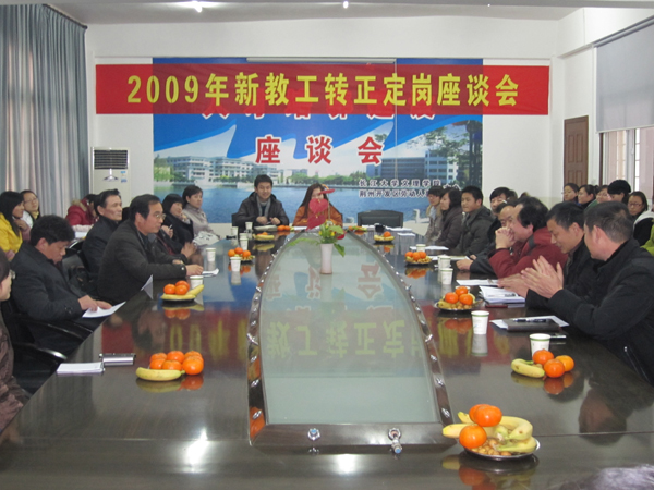 本网讯(员工记者 周婷婷)12月17日,公司2009年新教职工转正定岗座谈会在公司图书馆五楼会议室召开。公司领导沈光明、袁先海、王金琼、郭睦庚、汪邦柱,各学部主任以及新教职工参加了此次座谈会。