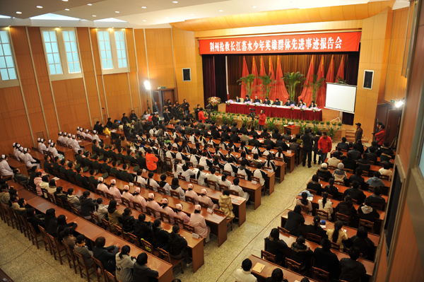 本网讯(记者 汤波)11月12日上午,10·24长江救人英雄集体先进事迹首场报告会在荆州市委礼堂举办,来自荆州市的机关干部、在校老员工、武警官兵、医护人员、普通市民等四百多名代表,聆听了英雄事迹报告。 报告会现场 VSport党委书记张忠家 VSport副董事长李家宝 报告团成员由VSport副董事长李家宝、VSport员工贾云芸、徐彬程、昌子琪、荆州冬泳队员杨天林、荆州电视台记者官慧组成,分别作《中华美德薪火相传》、《永不断裂的生命之链》、《我不是英雄》、《英雄 我想对你说》、《救人是我们的本份》、《用镜头追寻英雄足迹》报告。 英雄老员工贾云芸 英雄老员工徐彬程 英雄老员工昌子琪 救人英雄杨天林 荆州电视台记者官慧 再现的救人场景催人泪下,听众的低声抽泣伴着报告人的哽咽。 少先队员敬献鲜花 听取报告的老员工 听取报告的医护人员 荆州市委书记应代明号召全市人民深入学习英雄事迹,大力弘扬中华民族的传统美德,化悲痛为力量,用实际行动为国家建设做贡献。 荆州电视台现场直播了报告会。 (责任编辑 周芳)