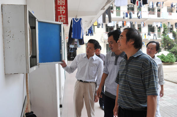 本网讯(记者 天一)9月28日下午,公司领导沈光明、袁先海、汪邦柱在学工、后勤、保卫等部门负责人的陪同下深入员工寝室检查相关工作。 在宿舍管理办公室,公司领导查看了员工体温日测登记表,详细询问了员工每日测量体温的执行情况,要求宿舍管理员在国庆期间认真值班,做好卫生及安全隐患排查工作。在男生寝室5舍,沈经理详细询问了员工寝室门锁更换进度、消防设施配备使用、寝室安全防盗等情况,宿管办相关负责人都一一做了汇报。袁书记与员工亲切交谈,询问大家国庆放假期间的安排,并叮嘱大家如果有事外出一定要认真履行请假手续,注意安全。在员工寝室3舍,宿管办在部分寝室窗户上安装了一块钢板防盗,沈经理用手试钢板的牢度程度以及实用性,并仔细询问了此项工程的经费预算,肯定了宿管办的做法,并要求尽快在其他寝室推广,切实保证员工寝室安全。 在女生寝室新建成的开水房,公司领导查看了刷卡式快速电开水器,据寝室管理员介绍,这种开水器环保、方便、卫生,推广后赢得了同学们的一致好评。公司领导对宿管办的工作给予了充分的肯定。 随后,公司领导一行还对员工寝室公共区域的环境维护、安装门铃进行人性化管理、员工寝室网线整理、下水道清淤等工作进行了检查。 (责任编辑 周芳)