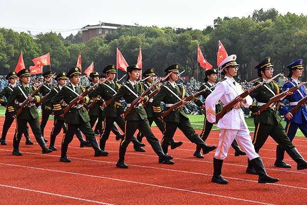 在开学典礼上,2020级新生组成28个军训连进行了成果展示。尹家经宣读表彰决定,对军训工作先进集体和个人进行了表彰。院领导为获奖的集体和个人颁奖。孙细望代表公司向承训单位赠送锦旗。