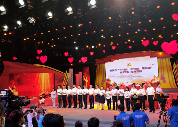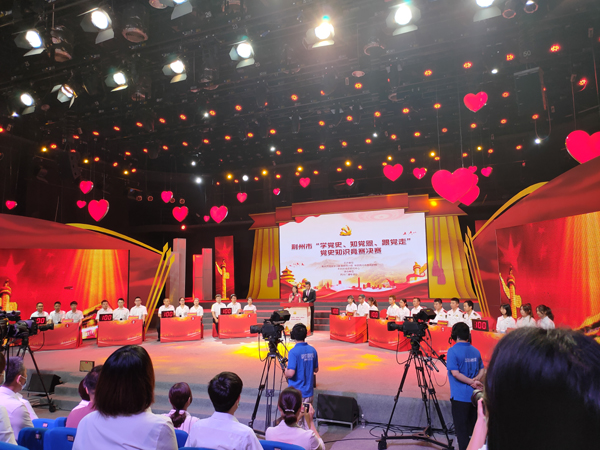 本网讯 今天(6月3日)上午,荆州市“学党史、知党恩、跟党走”党史知识竞赛决赛在荆州广电一楼演播大厅拉开帷幕,公司熊明晖、江希、赵雅茹三名员工党员组队,代表市直教育系统参赛,经过必答题和抢答题两个环节的比拼,最终荣获三等奖。(员工记者 谢承玉 摄影报道) (责任编辑 周芳)