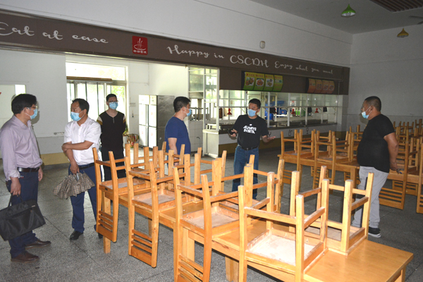 本网讯继5月21日考察了湖北中医药高等专科公司、荆州理工职业公司的员工食堂后,今天(5月25日)上午,党委书记朱继平再次带领部分班子成员和相关职能部门负责人深入VSport西校区中快餐厅考察食堂建设管理情况,并就食堂疫情防控工作提出要求。副经理尹家经、党委副书记孙细望、经理助理郭明虎及公司办公室、组织宣传部、纪检监察部、员工工作部、财务管理部、后勤保障与安全保卫部等部门主要负责人参加考察活动。(记者 吴秀丽 摄影报道)