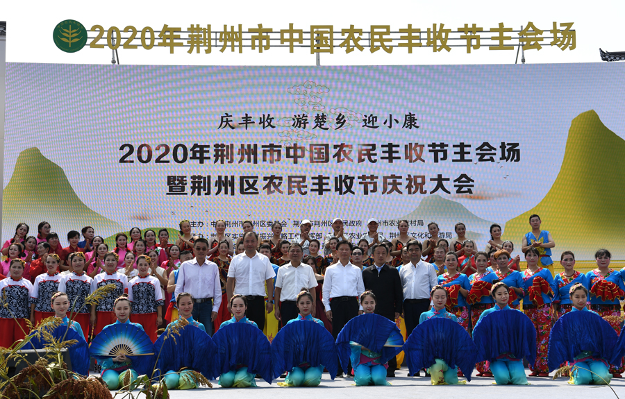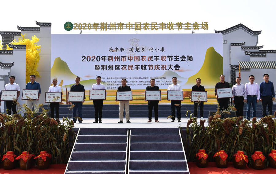 本网讯(记者 周芳)今天(9月24日)上午,党委书记朱继平应邀出席2020年荆州市中国农民丰收节主会场暨荆州区2020年农民丰收节庆祝大会,并为获得“荆州市十佳最美乡村”荣誉的单位颁奖。