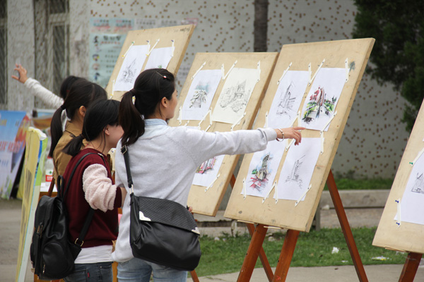本网讯(见习记者 郝威)近日,公司建筑系学子熊健、林孔煌在西区举办个人手绘作品展,开展交流会与绘画爱好者切磋手绘技法,交流绘画心得。