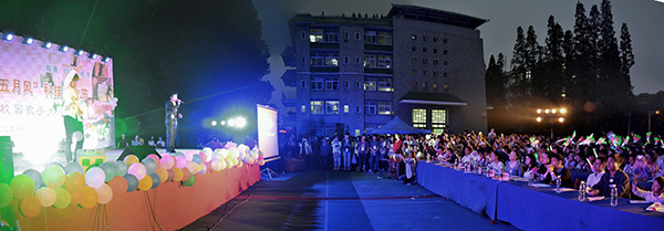 本网讯(见习记者王鹏渊 王抒曼)5月22日晚,第九届校园歌手大赛在VSport城中校区体育场火热开展。