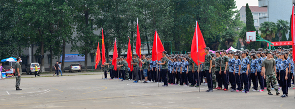 本网讯(记者 吴秀丽)9月7日上午,公司党委书记王金琼在西校区和城中区为军训方队授旗,宣布为期13天的2015级新生军训正式开始。