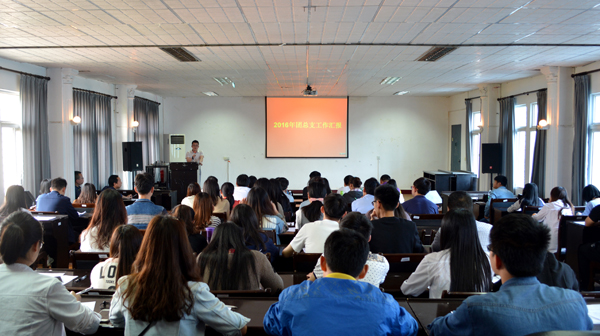 本网讯(记者 吴秀丽)4月27日下午,公司2015-2016学年“五四红旗团总支”评选活动在学术报告厅落下维幕,人文与传媒系团总支、工商管理系团总支获“五四红旗团总支”荣誉称号。
