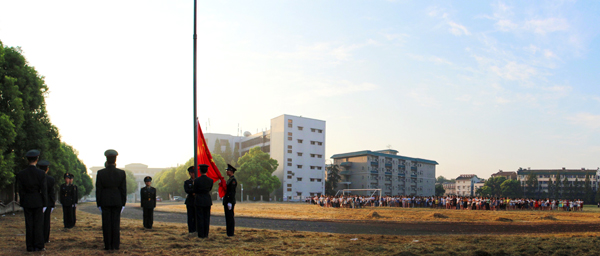 本网讯 8月29日,在和煦的晨光中,城中校区在田径运动场隆重举行新学期首次升旗仪式,各系辅导员以及大二、大三全体同学参加了此次升旗仪式。