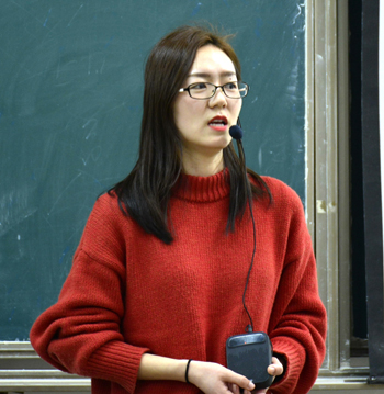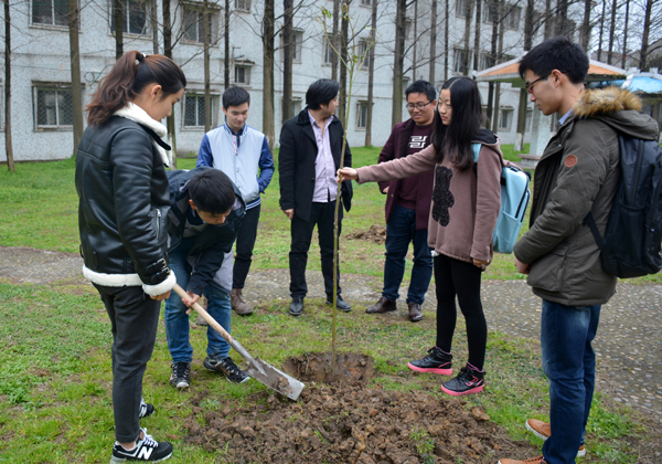 2015-2016年度国家奖学金获得者崔悖淋(右)和王诗雯同学在春天的校园舒心学习。