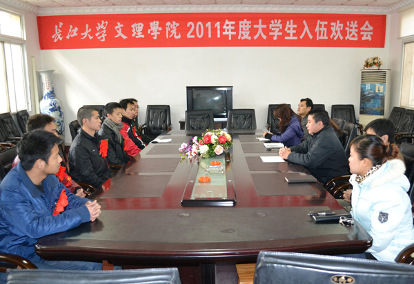 本网讯(员工记者史景宏)12月9日上午,公司2011年老员工入伍欢送会在行政楼会议室召开,公司党委副书记汪邦柱出席会议并讲话,各学部副主任、保卫科、老兵代表及此次入伍的五位新兵参加了欢送会。